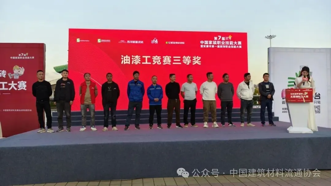10月27日下午,由中国建筑材料流通协会主办,中国建筑材料流通协会家庭装修专业委员会承办,安康马可波罗瓷砖、安康市室内装饰协会、安康市满意建材市场有限公司、安康三只兔信息科技有限公司联合承办,马可波罗控股股份有限公司、三只兔共享装修平台战略合作,亿固金钢瓷砖胶大力支持的第七届中国家装职业技能大赛安康赛区暨安康市第一届装饰职业技能大赛在安康金州广场盛大举办。 中国建筑材料流通协会副会长冯斯静代表秦占学会长出席并致辞,协会陶瓷卫浴首席专家黄芯红、协会家庭装修专委会主席韩军、安康市工商业联合会党组成员、副主席、秘书长兼总商会党委书记潘杰、安康市室内装饰协会会长徐安、马可波罗控股股份有限公司陕南销区经理李旭镔等领导嘉宾出席此次赛事活动。 此次大赛吸引了来自全市近百名优秀家装技能人才,共同在瓷砖镶贴、水电安装、油漆涂刷、木工制作多个领域展开激烈角逐。 开赛前,为确保比赛的公平性和专业性,大赛组委会在赛前组织了一系列培训活动。培训内容涵盖家装行业的前沿技术、安全规范及比赛规则等方面。通过培训,参赛选手不仅提高了技能水平,还对比赛有了更深入的了解,为比赛打下了坚实的基础。 赛前培训 大赛开幕式上,中国建筑材料流通协会副会长冯斯静代表主办方首先发表致辞讲话,她表示,一方面,随着“两新”政策的实施显效,激发了旧房装修、厨卫改造等万亿级的装修市场;另一方面,中共中央国务院印发了《关于深化产业工人队伍建设改革的意见》,指出要深入开展劳动和技能竞赛,持续办好各类职业技能赛事活动,还对产业工人的发展、收入、服务保障、安全健康权益等做出政策部署。本次大赛的举办正是积极响应国家政策的具体落地,希望通过本次大赛的平台提升家装各项施工技能水平,培育知识型、技能型、创新型家装工匠人才,发掘安康的大国工匠,展现出安康装修工匠的风采。 中国建筑材料流通流通协会副会长冯斯静 安康市工商业联合会党组成员、副主席、秘书长兼总商会党委书记潘杰在致辞中表示:本次大赛是贯彻落实国家技能人才战略的重要举措,对于推动安康市家装行业的技术进步和产业升级具有重要意义。同时,也希望参赛选手能够充分展示技艺、交流经验,共同推动家装行业向更高质量、更高水平发展。 安康市工商业联合会党组成员、副主席、秘书长兼总商会党委书记潘杰 中国建筑材料流通协会家装委主席韩军表示:家装行业作为提升居民生活品质的重要一环,正经历着前所未有的变革与创新。随着消费者对家居环境要求的日益提高,我们不仅需要更优秀的设计作品,更需要技艺精湛、精益求精的工匠来将这些设计变为现实。通过比赛,可以直观地看到工匠们的精湛技艺,感受到他们对工艺的极致追求和对品质的坚守。 中国建筑材料流通流通协家装委主席韩军 安康市室内装饰协会会长徐安表示:中国家装职业技能大赛的举办,对于提升家装行业整体水平、培养优秀工匠具有重要意义。通过比赛,不仅可以展示选手们的专业技能和风采,更可以激发广大从业者学技术、练本领的热情,推动家装行业的技术进步和产业升级。 安康市室内装饰协会会长徐安 马可波罗控股股份有限公司陕南销区经理李旭镔表示:中国家装职业技能大赛作为国内家装行业的重要赛事,一直以来都备受关注。它不仅为工匠们提供了一个展示技艺、交流心得的平台,更为推动家装行业的技术进步和服务质量提升做出了重要贡献。优质的瓷砖产品离不开精湛的技艺和专业的服务。因此,马可波罗瓷砖始终注重工匠技艺的培养和提升,希望通过技能大赛这样的平台,激发工匠们的创造力和创新精神,推动家装行业向更高水平发展。 马可波罗控股股份有限公司陕南销区经理李旭镔 安康三只兔信息科技有限公司总经理杨帝成在致辞中表示:三只兔信息科技有限公司一直秉承“匠心精神,品质生活”的理念,致力于为消费者提供优质的家装服务。而工匠精神正是实现这一理念的关键所在。通过技能大赛,可以激发工匠们的创造力和创新精神,推动家装行业向更高水平发展。同时,杨总也表达了对未来合作的期待。他希望与更多优秀的工匠、企业建立合作关系,共同推动家装行业的繁荣发展。 安康三只兔信息科技有限公司总经理杨帝成 专家评委聘任仪式 大赛评委组由来自家装行业的资深专家组成,他们拥有丰富的实践经验和深厚的专业知识。在开幕式上,大赛组委会向评委们颁发了聘书,并希望他们能够在比赛中秉持公正、公平的原则,为选手们提供准确的评分和专业的指导。 现场竞技 比赛现场,瓷砖镶贴工、水电工、油漆工和木工等各个工种的选手们纷纷亮出绝活,展开了激烈的竞技。 瓷砖镶贴工们熟练地操作着角磨机、铺贴工具,将一块块瓷砖完美地镶嵌在墙面上。 水电工们则需要在限定时间内完成电路的铺设和水管的安装。他们首先仔细研究图纸,确保每一个细节都准确无误。 油漆工们则通过精湛的涂刷技巧,将腻子粉巧妙地涂抹在墙面上。 木工们则根据设计图纸仔细测量和切割木材,然后进行精细的安装。 在比赛过程中,专家评委们始终保持着高度的专注和严谨的态度。他们认真观察参赛选手的每一个操作细节,每一个环节都进行了严格的评分。评委们不仅