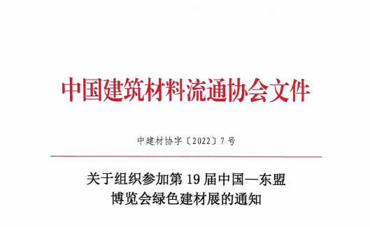 中国建筑材料流通协会是东博会绿色建材展承办单位。绿色建材展作为中国—东盟博览会的重要部分,将于2022年9月16日—19日在广西·南宁国际会展中心盛大召开。中央主要领导将出席开幕式。绿色建材展区将展示范围包括门窗展区、定制家居展区、厨卫电器展区、建材新产品展区(墙面、地材、吊顶、灯饰照明)、智能家居及智能建筑展区,为建筑装饰家居行业提供全产业链展示平台。由于建材展区面积有限,望各有关单位能够把握机会,在疫情后期积极参与到国际大循环中。