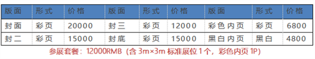标准展位(3m×3m):10000元/标展