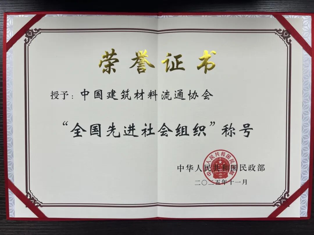 近日,中国建筑材料流通协会光荣获得由民政部评选的“全国先进社会组织”这一国家级殊荣(证书牌匾附后)。截至2024年底,在民政部登记的全国性社会组织(含社会团体、基金会、民办非企业单位)总数为2301家,在各省、市、县级民政部门登记的地方性社会组织近87万家。此次全国共有286家荣获“全国先进社会组织”并予表彰,我会为其中之一。